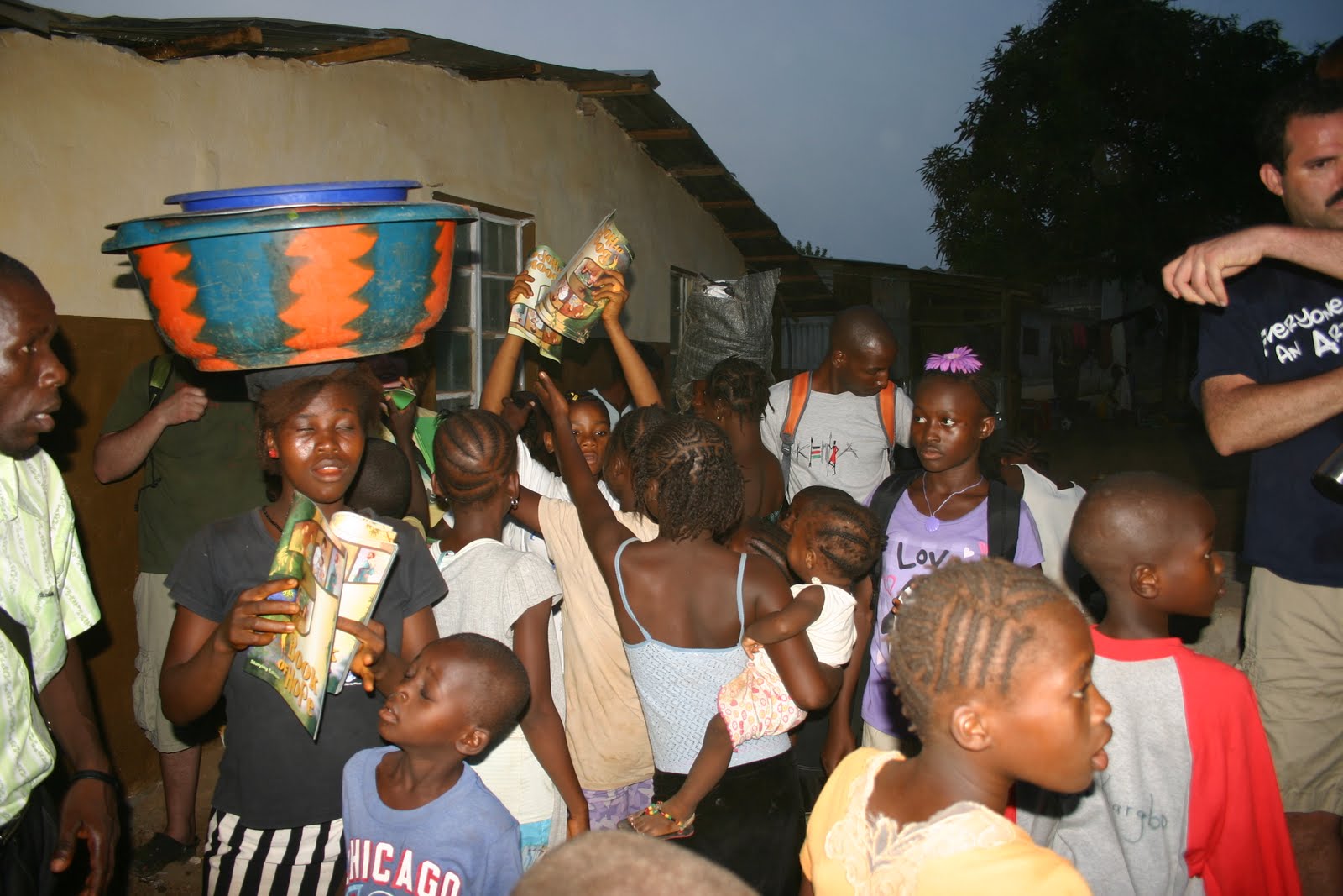 Monday evening, we met Pastor Daniel and ten of the children from The Covering at 6:00 GMT.* The ten kids were chosen because of their good behavior. We were all walking together into the community near the center to meet with people, pray for their needs and to give them a free Bible.